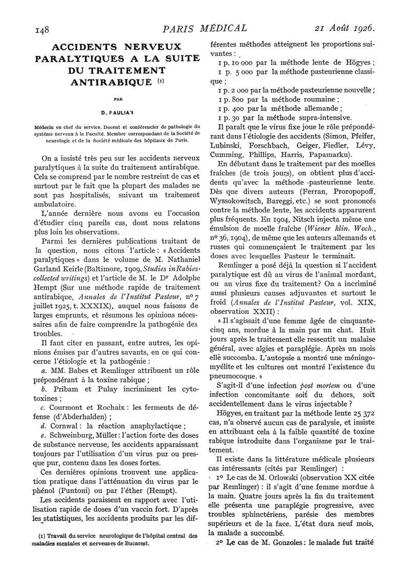 1926, n° 61, partie médicale. -