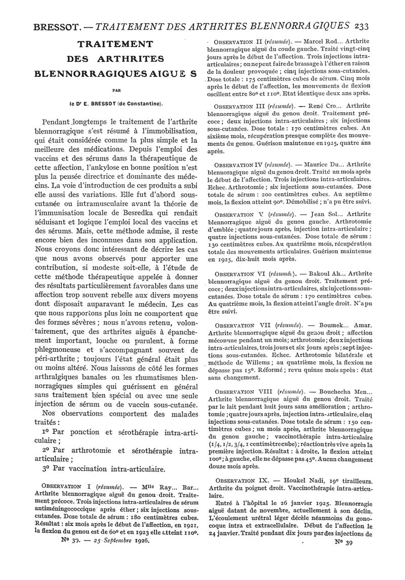 1926, n° 61, partie médicale. -