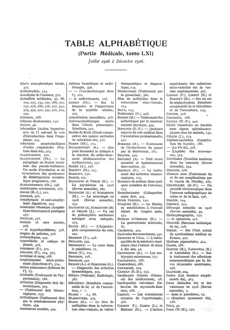 1926, n° 61, partie médicale. -