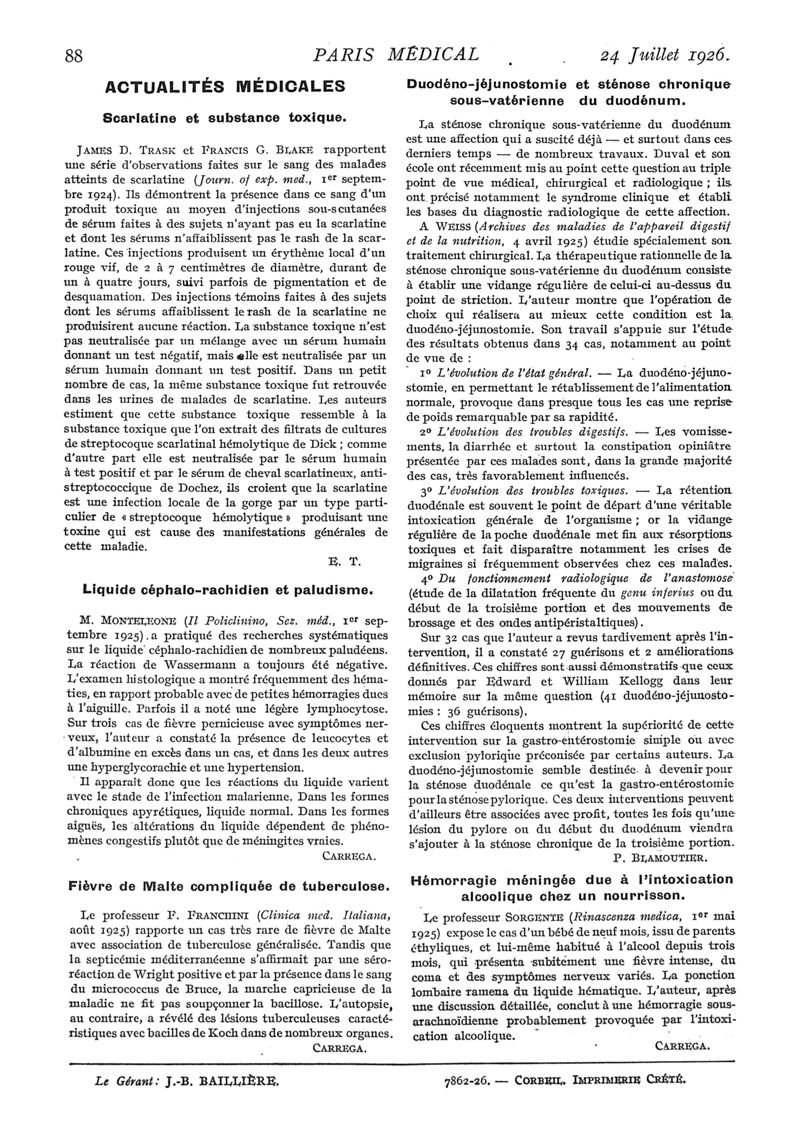 1926, n° 61, partie médicale. -