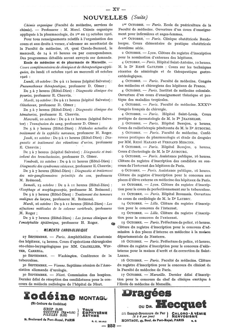 1926, n° 62, partie paramédicale. -