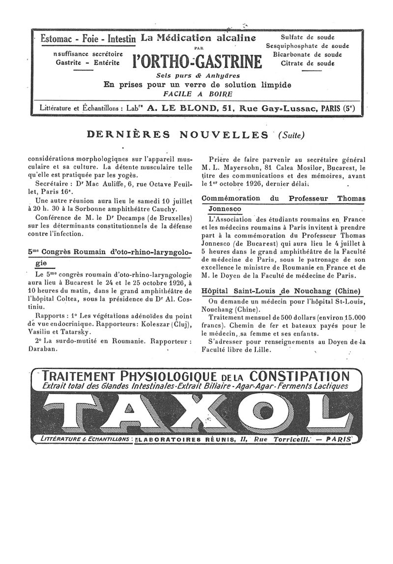 1926, n° 62, partie paramédicale. -