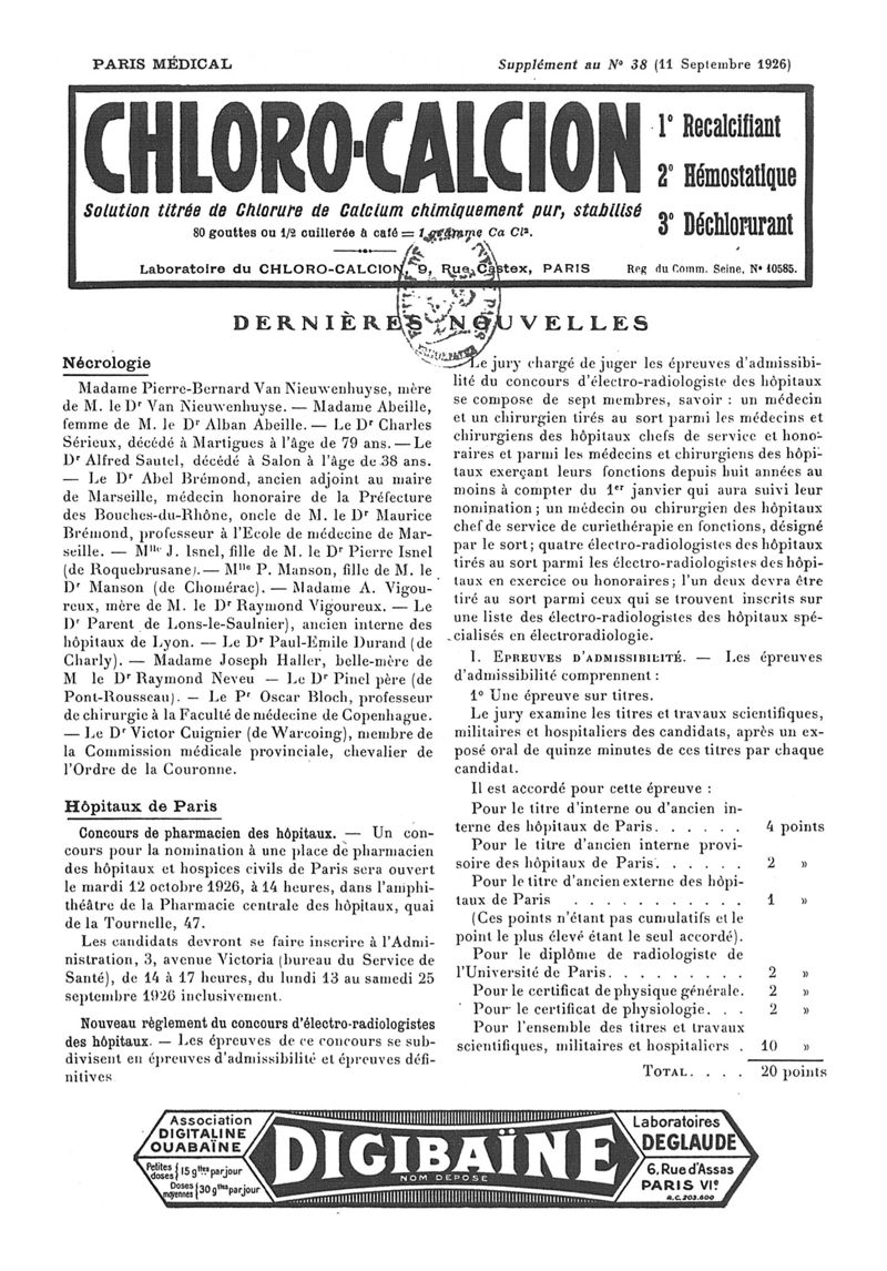 1926, n° 62, partie paramédicale. -