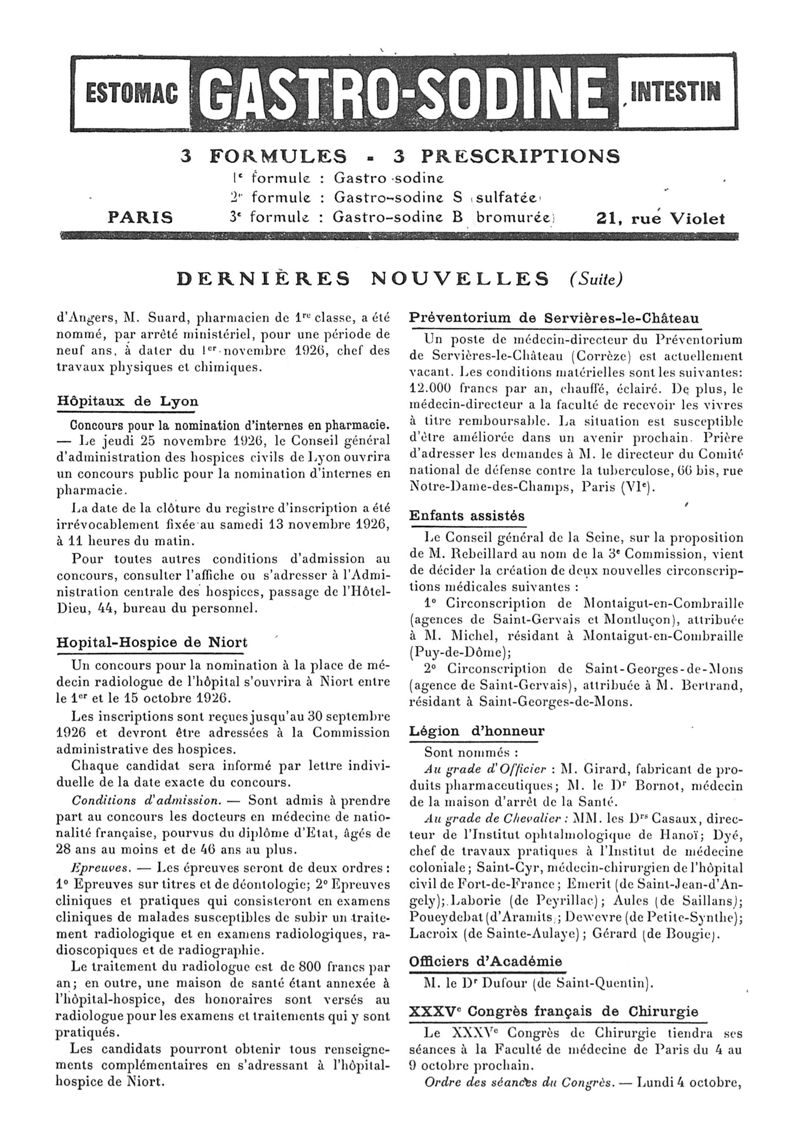 1926, n° 62, partie paramédicale. -
