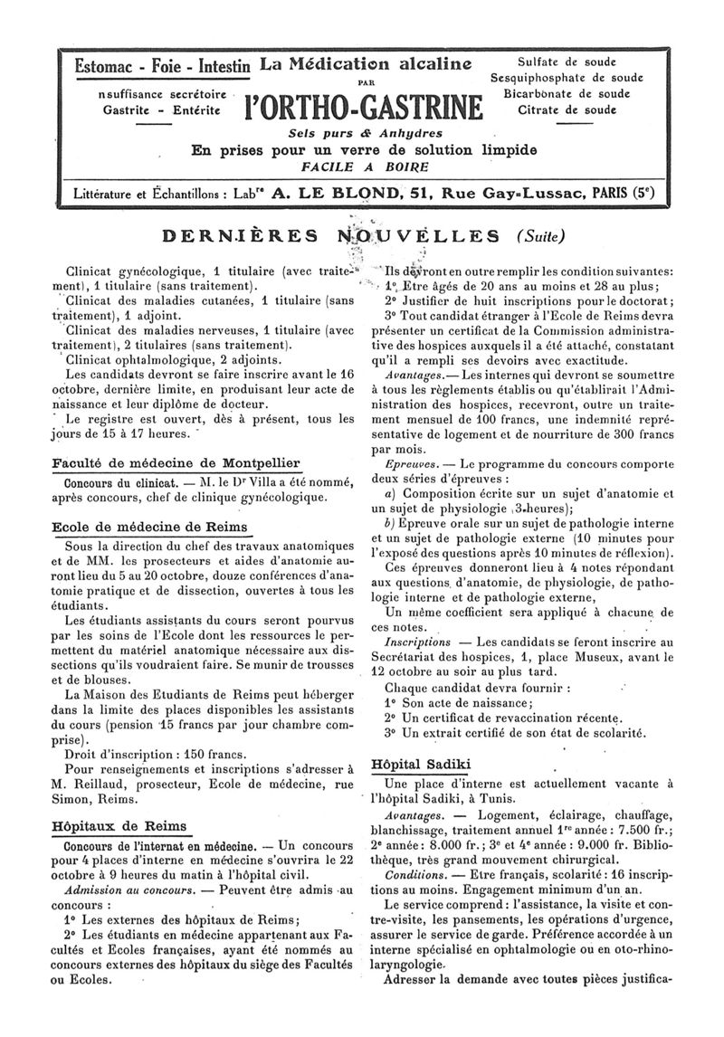 1926, n° 62, partie paramédicale. -