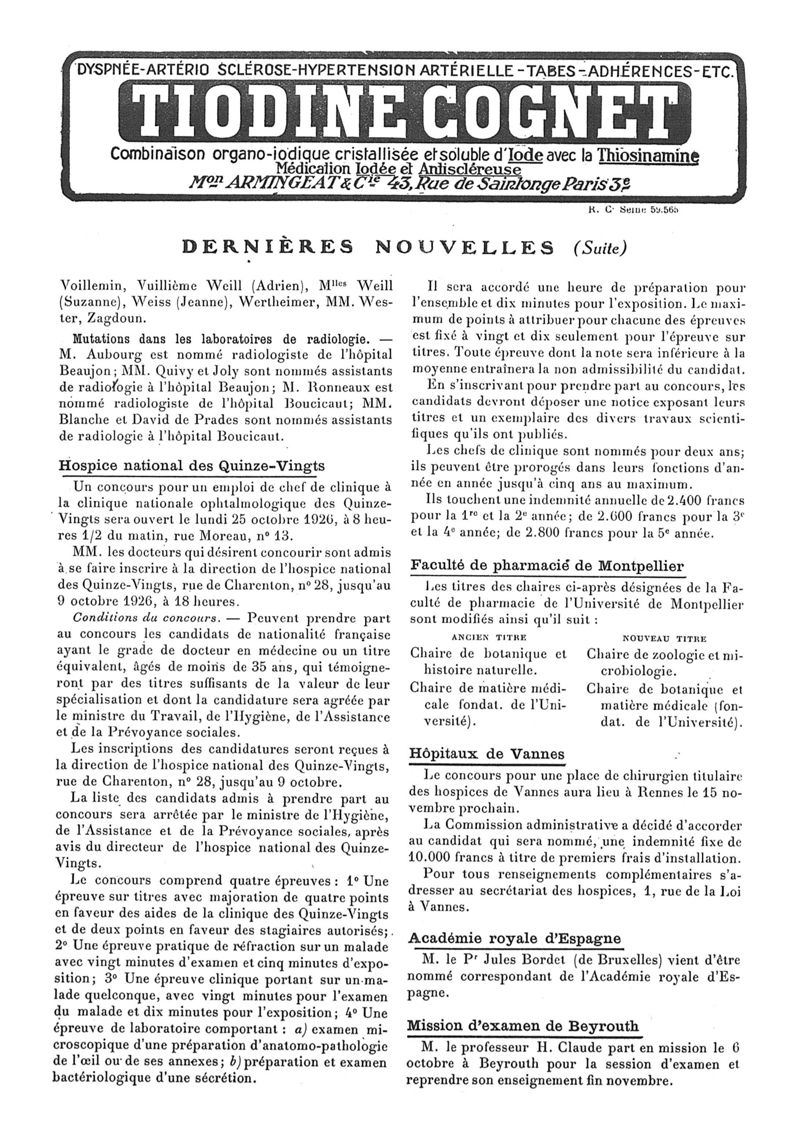 1926, n° 62, partie paramédicale. -