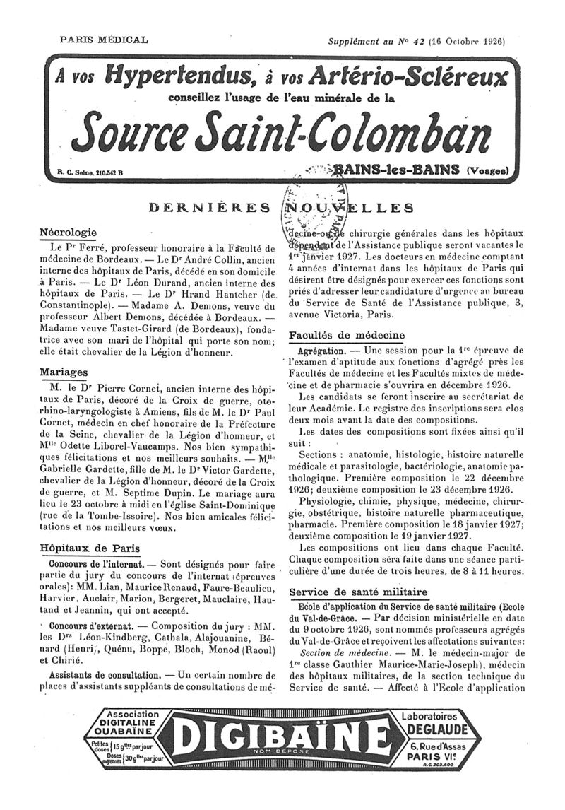 1926, n° 62, partie paramédicale. -