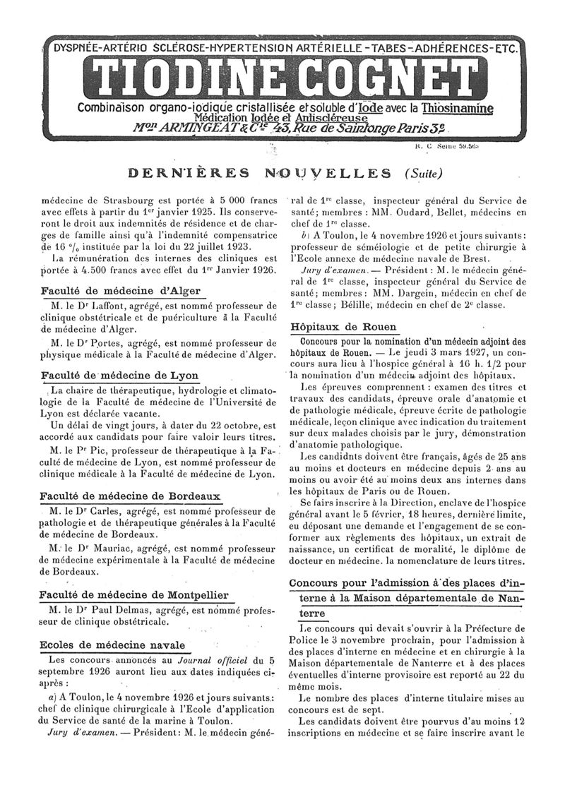 1926, n° 62, partie paramédicale. -