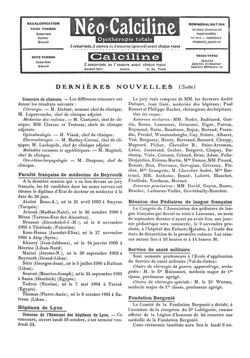 1926, n° 62, partie paramédicale. -