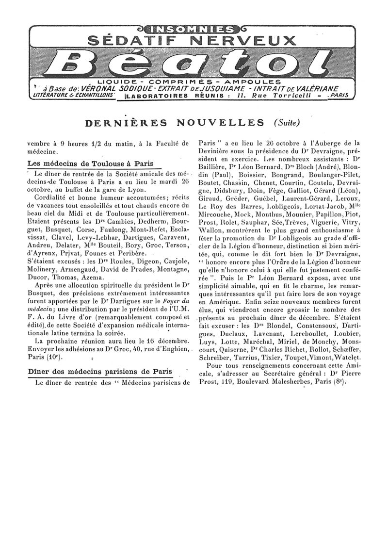 1926, n° 62, partie paramédicale. -