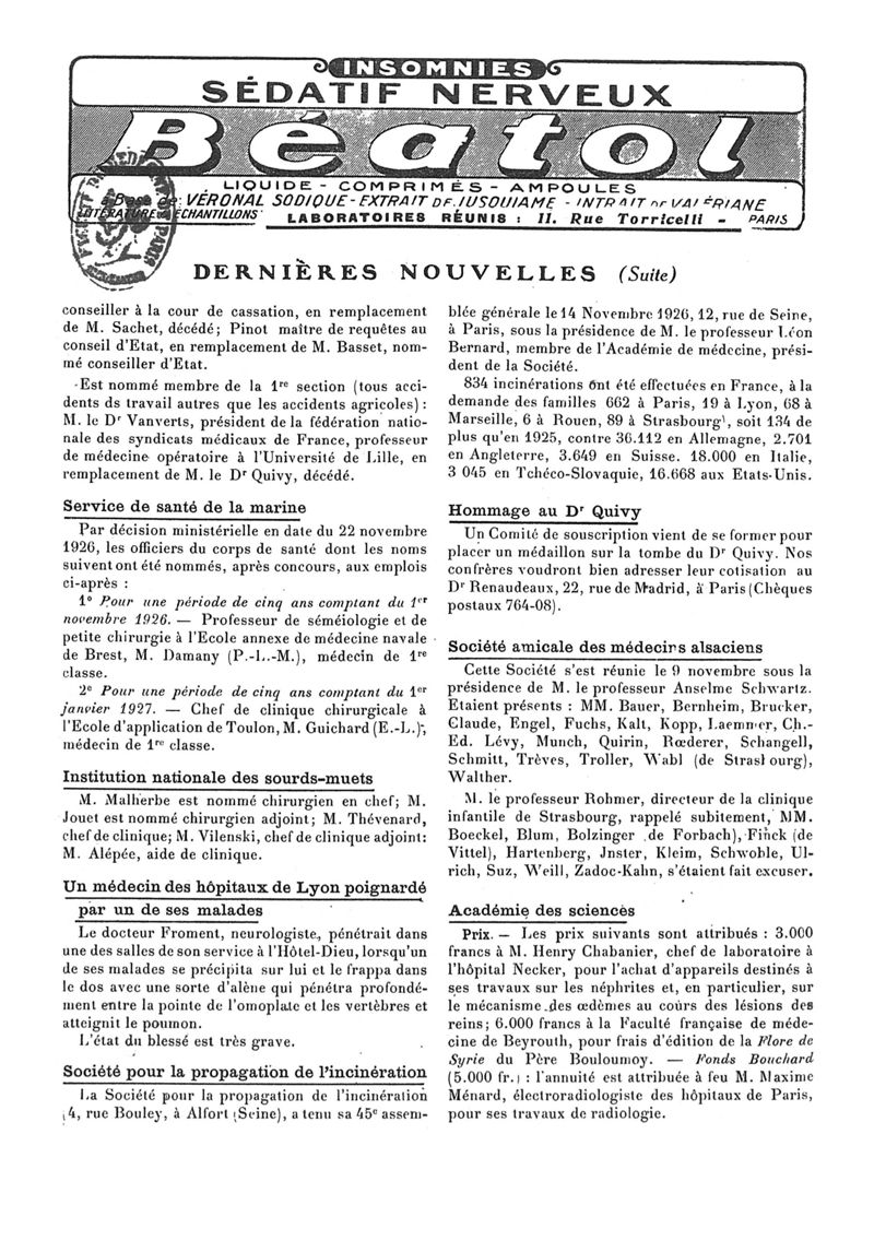 1926, n° 62, partie paramédicale. -