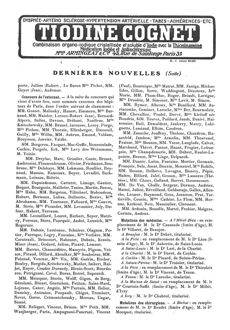 1926, n° 62, partie paramédicale. -