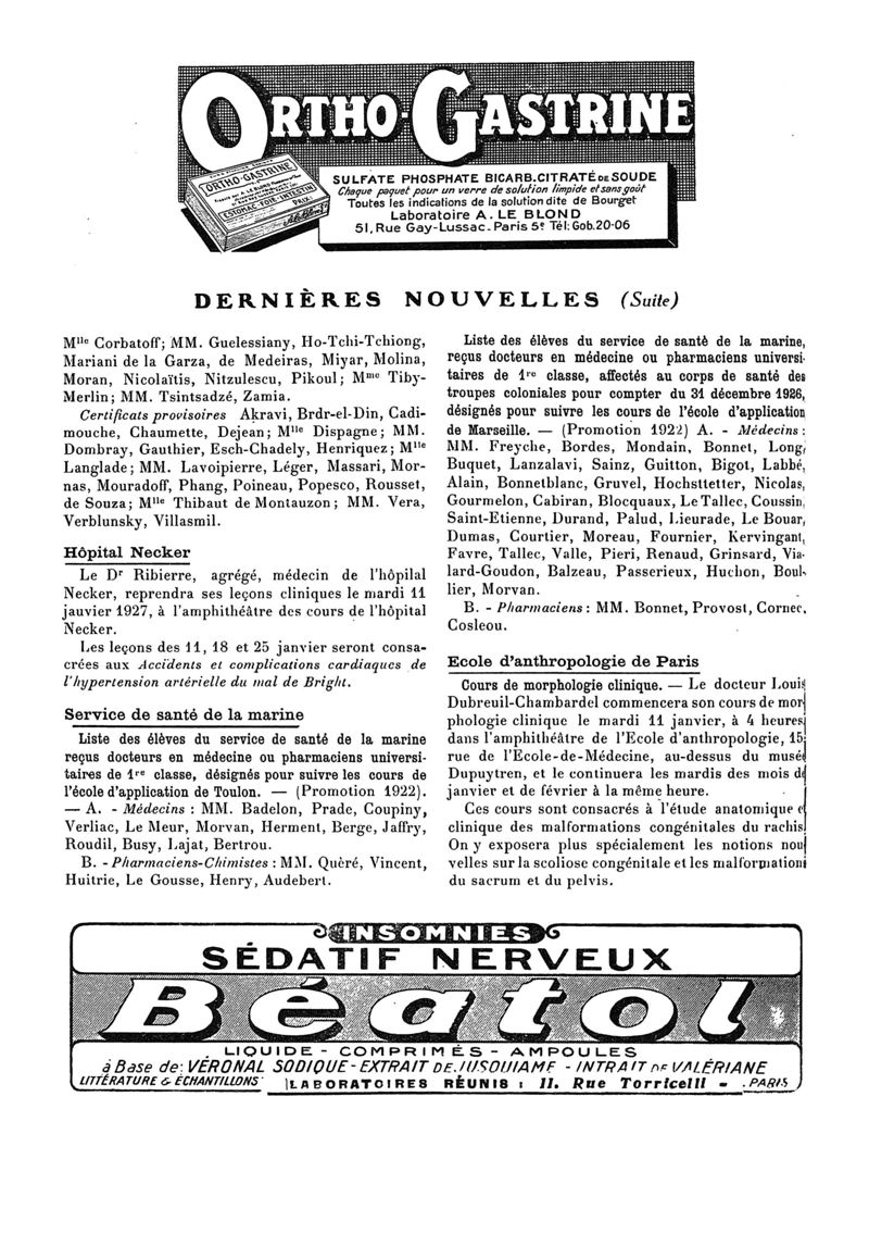1927, n° 64, partie paramédicale. -