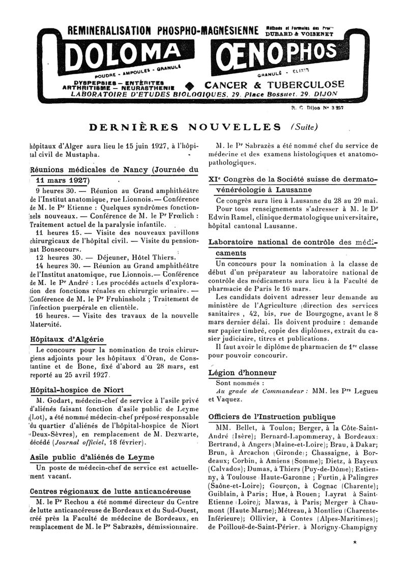 1927, n° 64, partie paramédicale. -