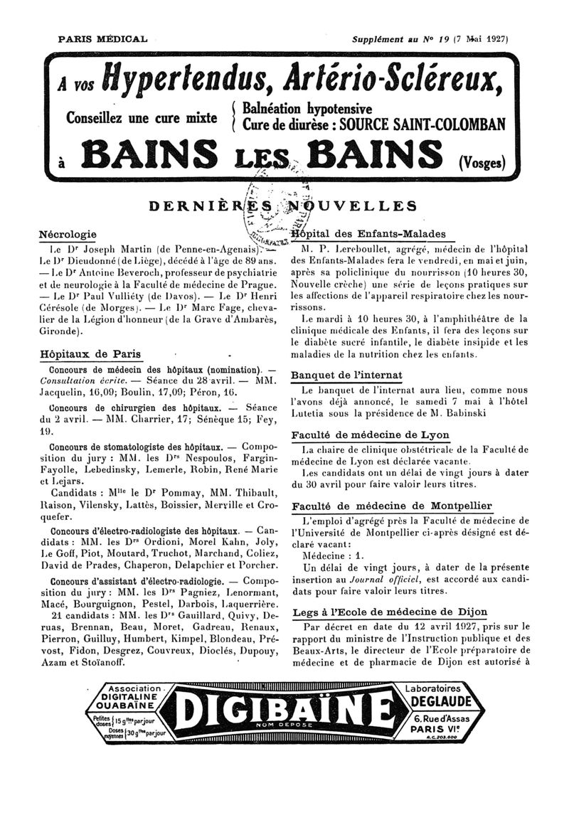 1927, n° 64, partie paramédicale. -