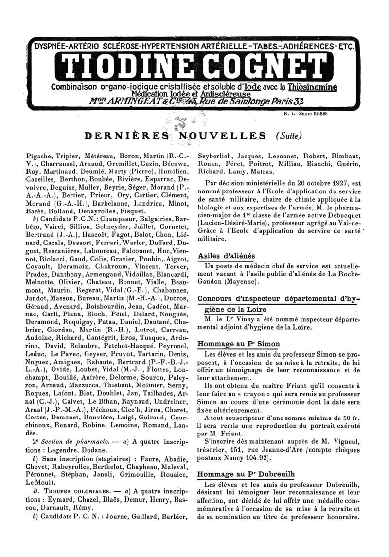 1927, n° 66, partie paramédicale. -