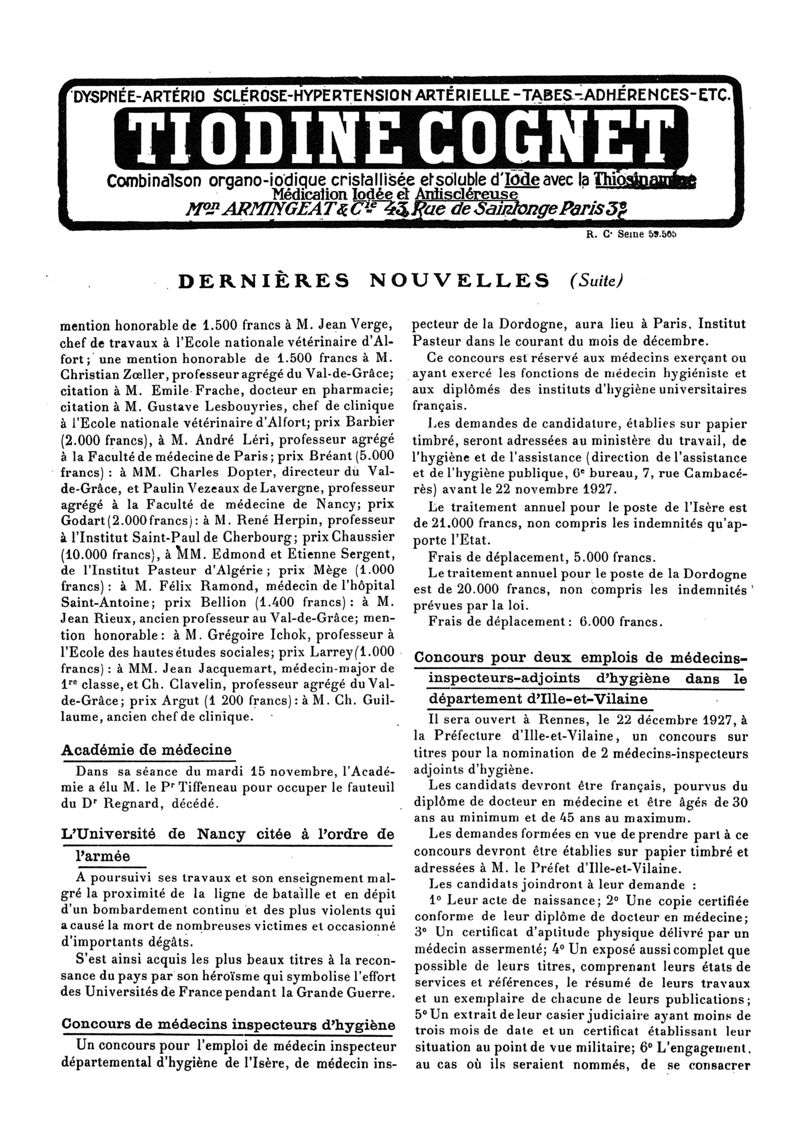 1927, n° 66, partie paramédicale. -