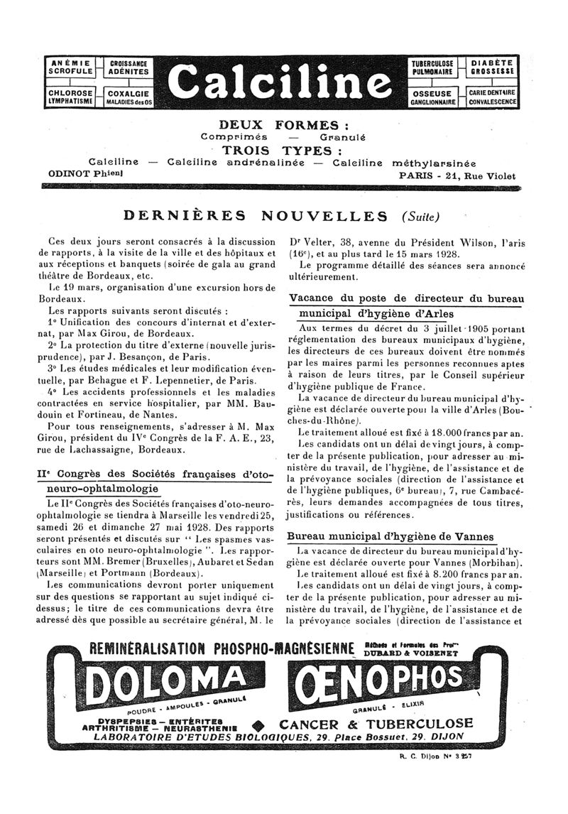 1928, n° 68, partie paramédicale. -