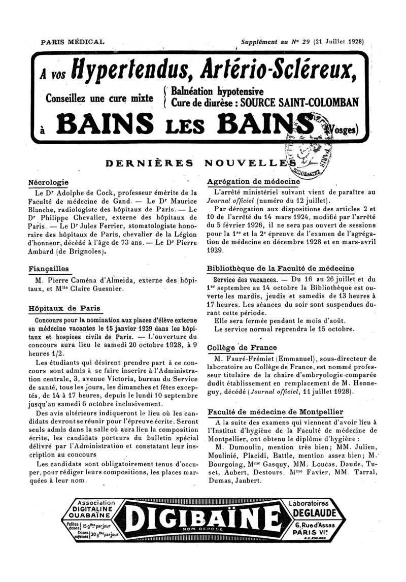 1928, n° 70, partie paramédicale. -