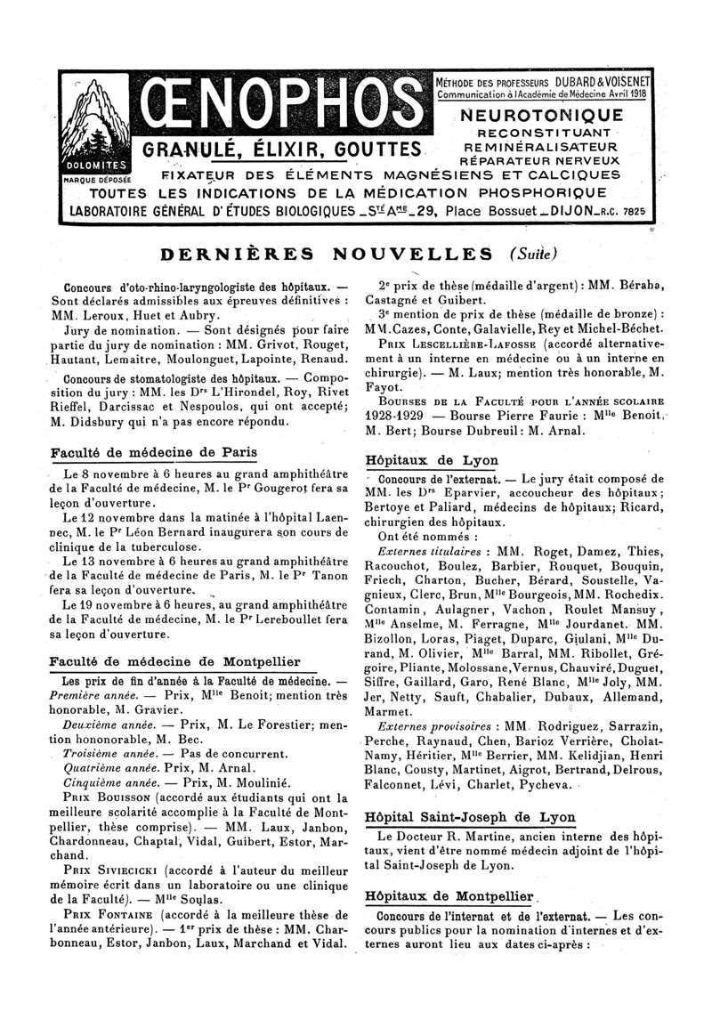 1928, n° 70, partie paramédicale. -