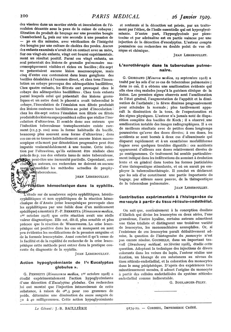 1929, n° 71, partie médicale. -
