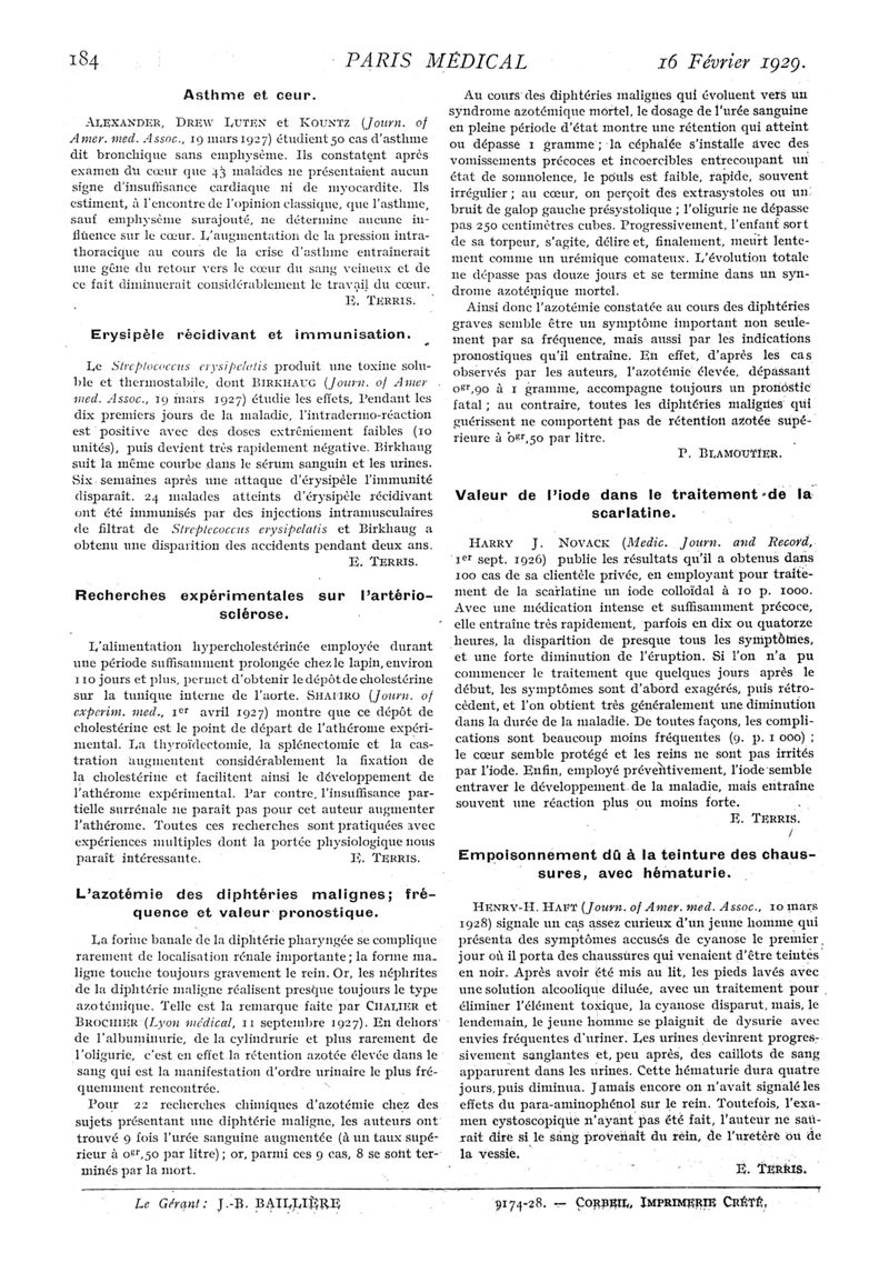 1929, n° 71, partie médicale. -