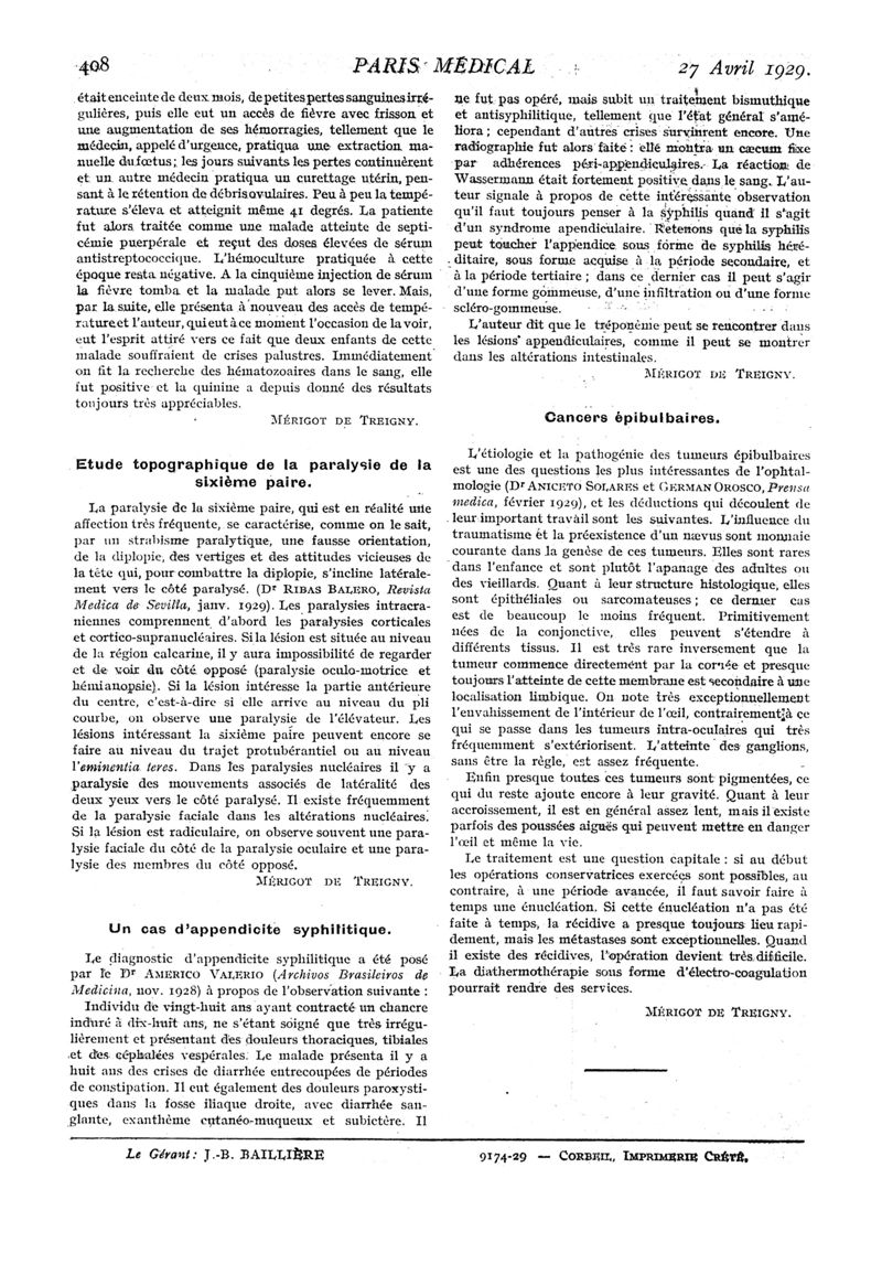 1929, n° 71, partie médicale. -