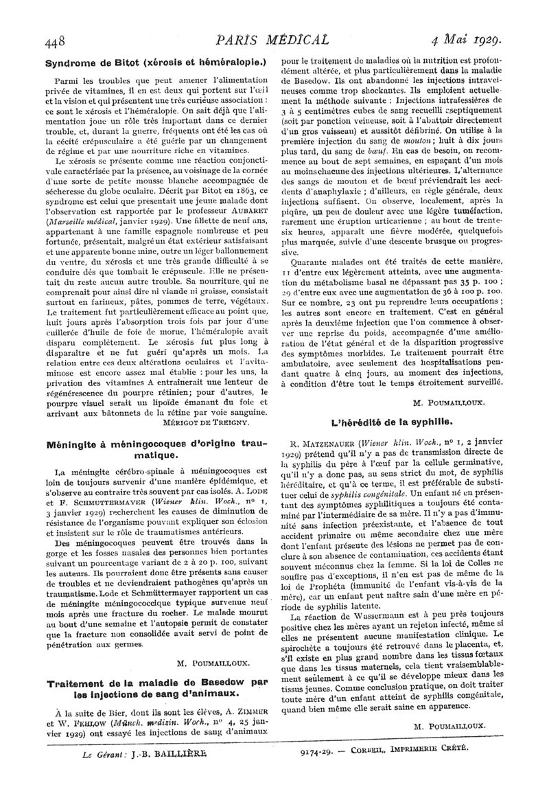 1929, n° 71, partie médicale. -