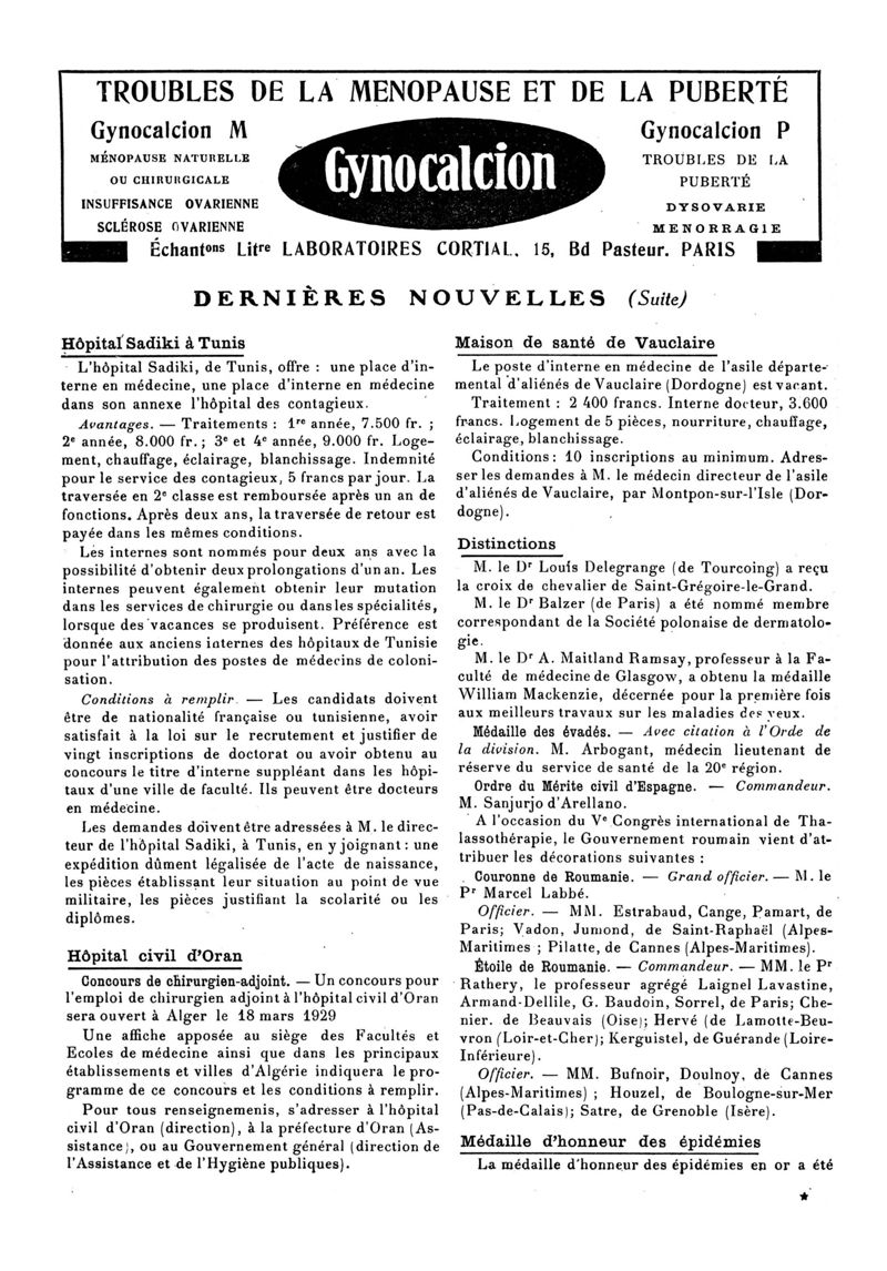 1929, n° 72, partie paramédicale. -