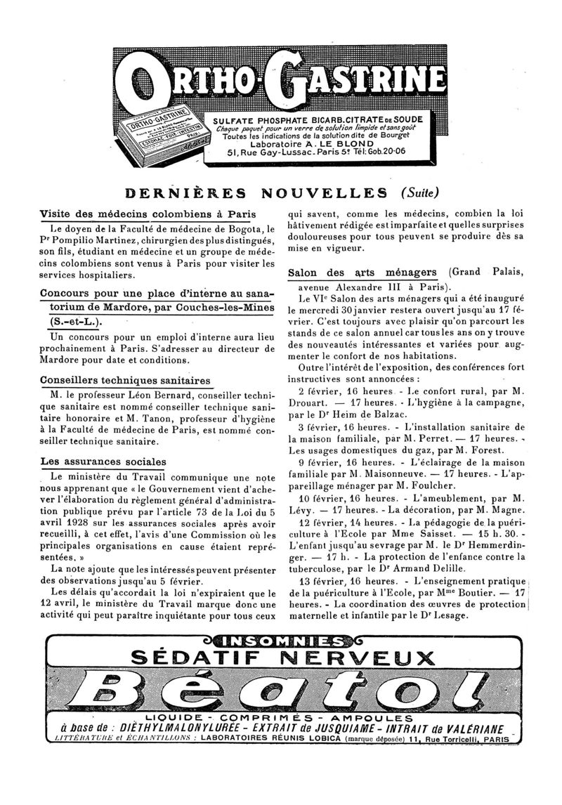 1929, n° 72, partie paramédicale. -