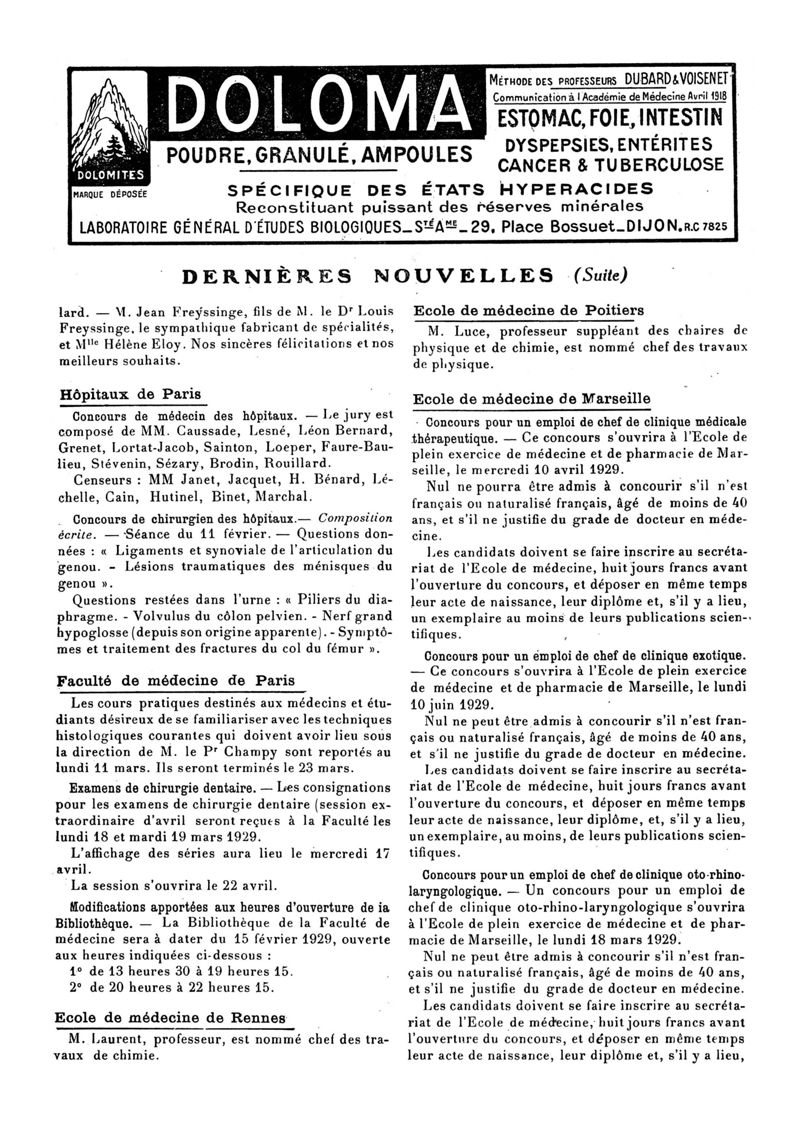 1929, n° 72, partie paramédicale. -