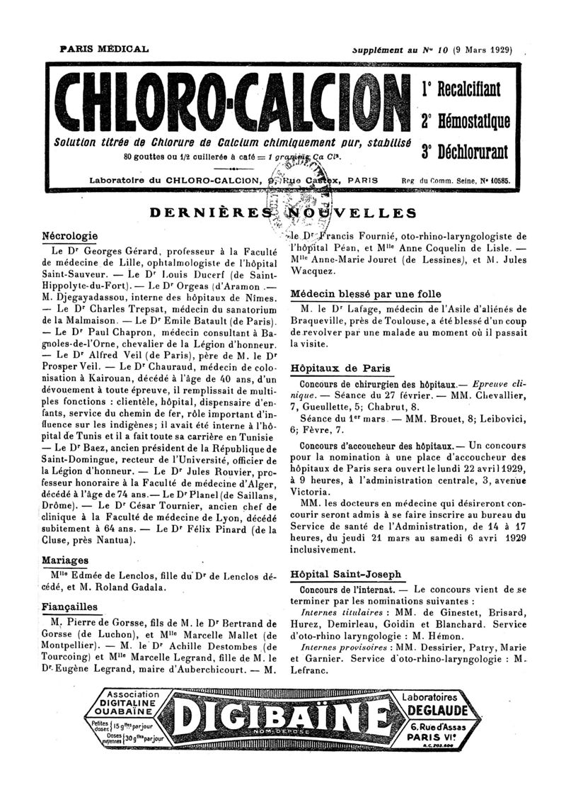 1929, n° 72, partie paramédicale. -