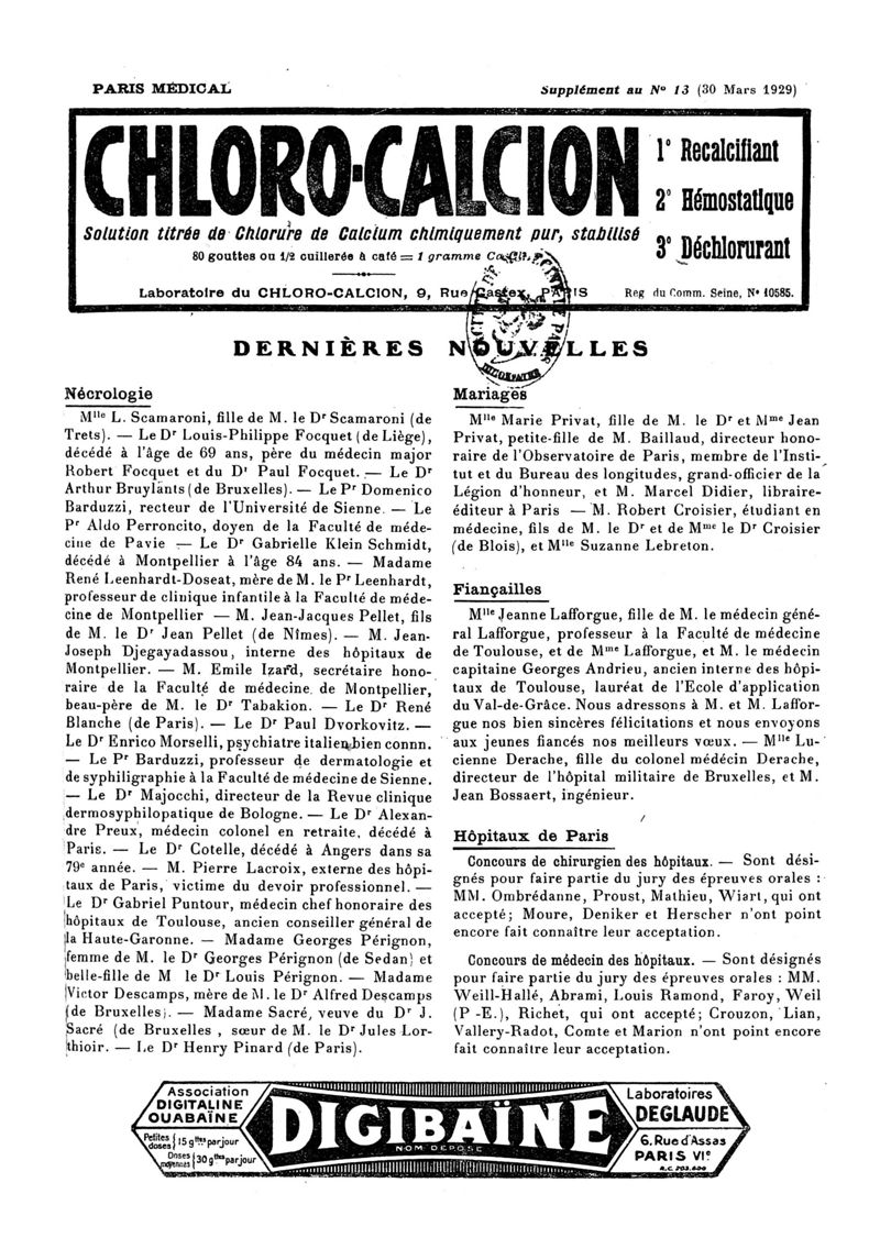 1929, n° 72, partie paramédicale. -