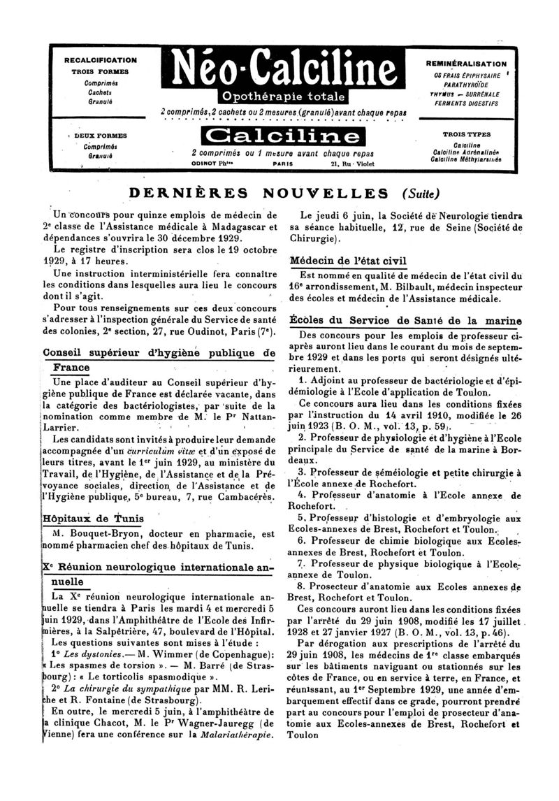 1929, n° 72, partie paramédicale. -
