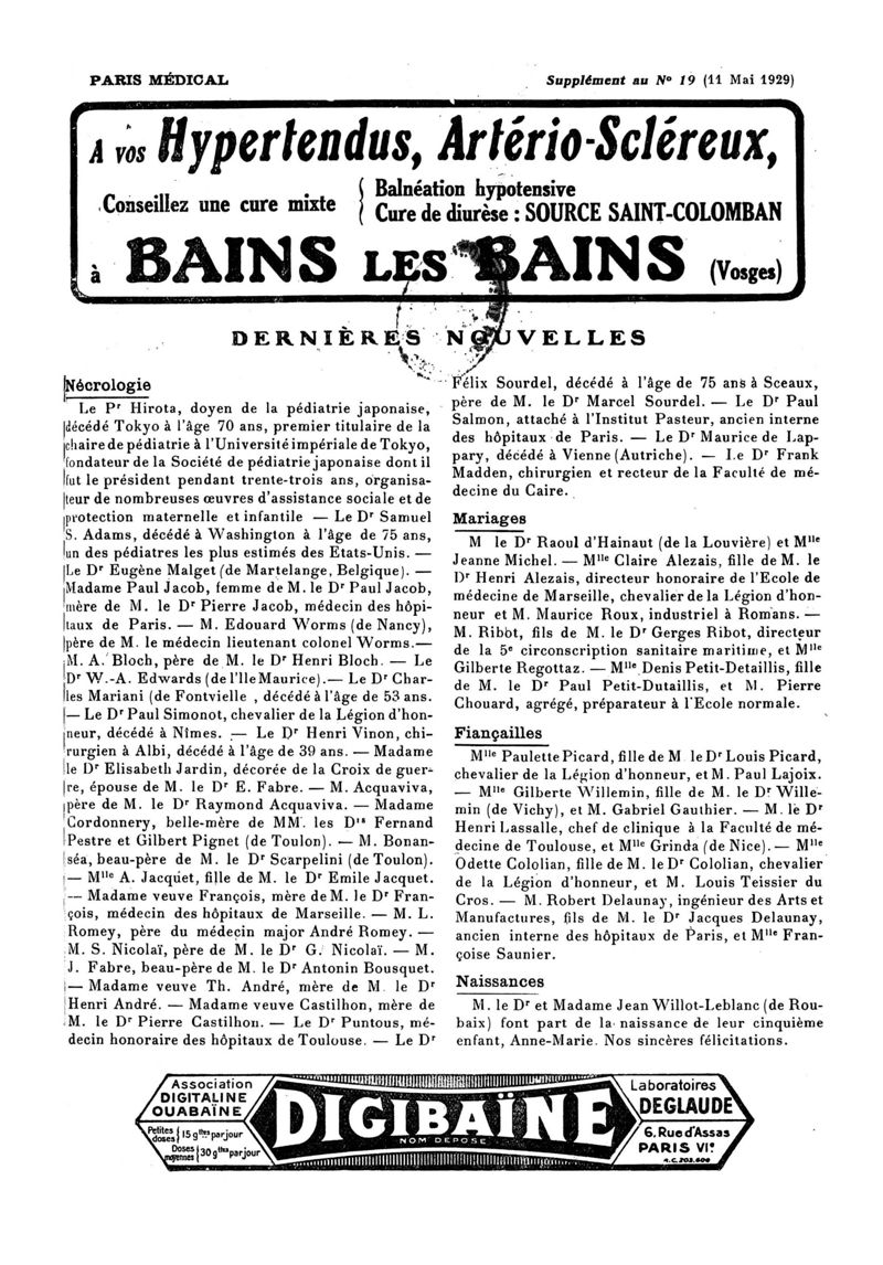 1929, n° 72, partie paramédicale. -