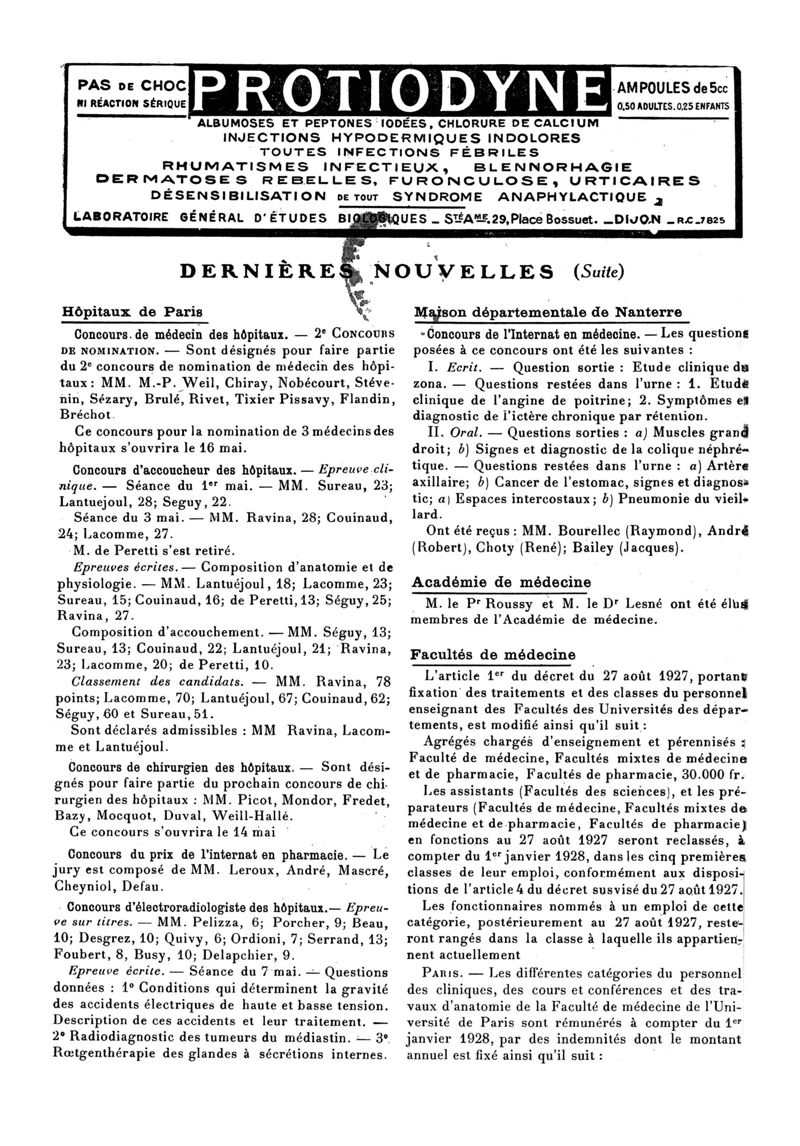 1929, n° 72, partie paramédicale. -