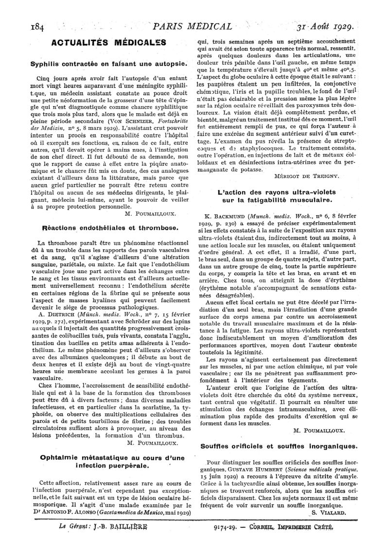 1929, n° 73, partie médicale. -