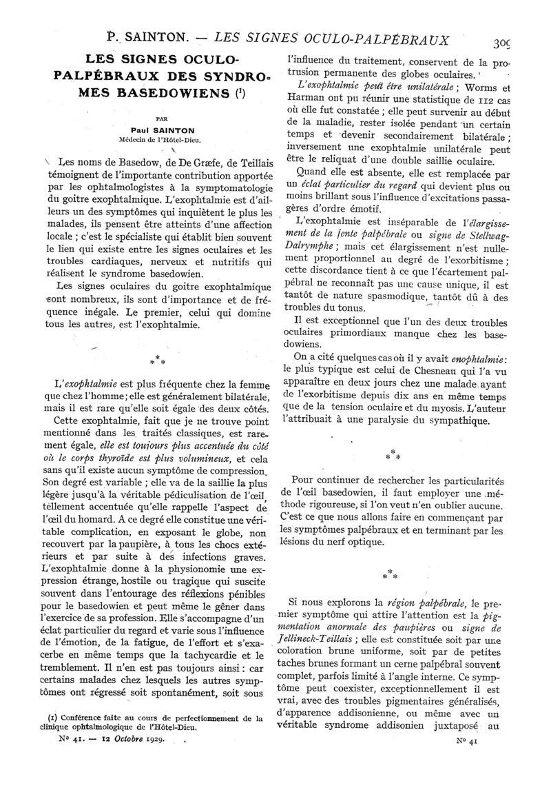 1929, n° 73, partie médicale. -