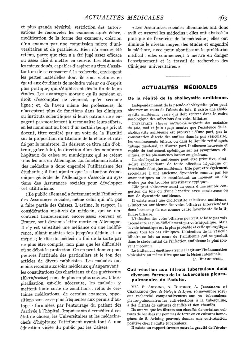 1929, n° 73, partie médicale. -