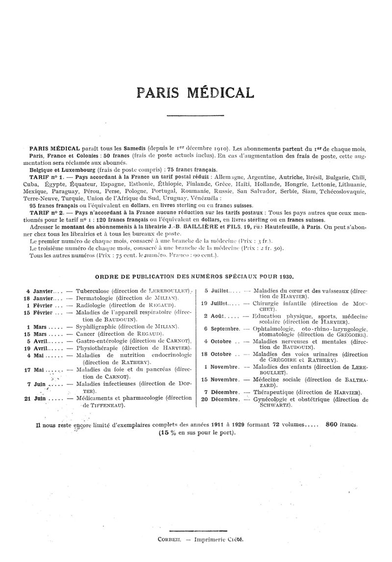 1929, n° 74, partie paramédicale. -