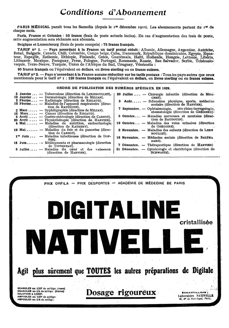 1929, n° 74, partie paramédicale. -
