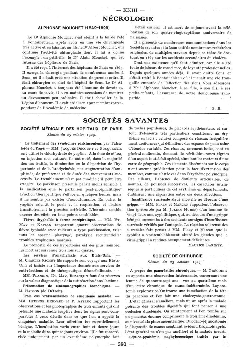 1929, n° 74, partie paramédicale. -