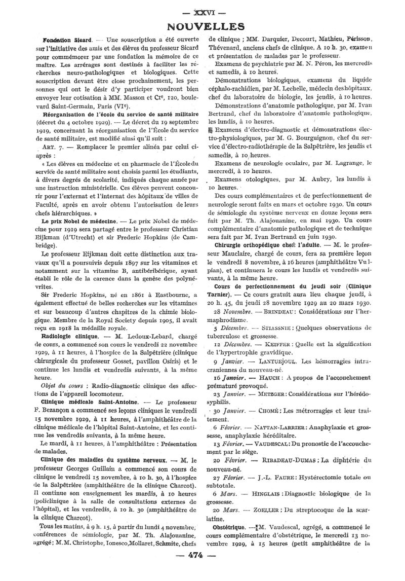 1929, n° 74, partie paramédicale. -