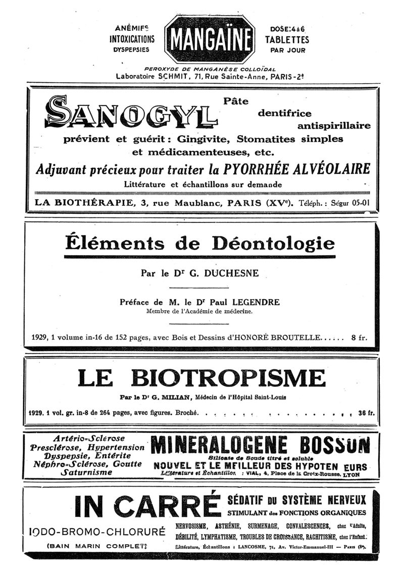 1929, n° 74, partie paramédicale. -