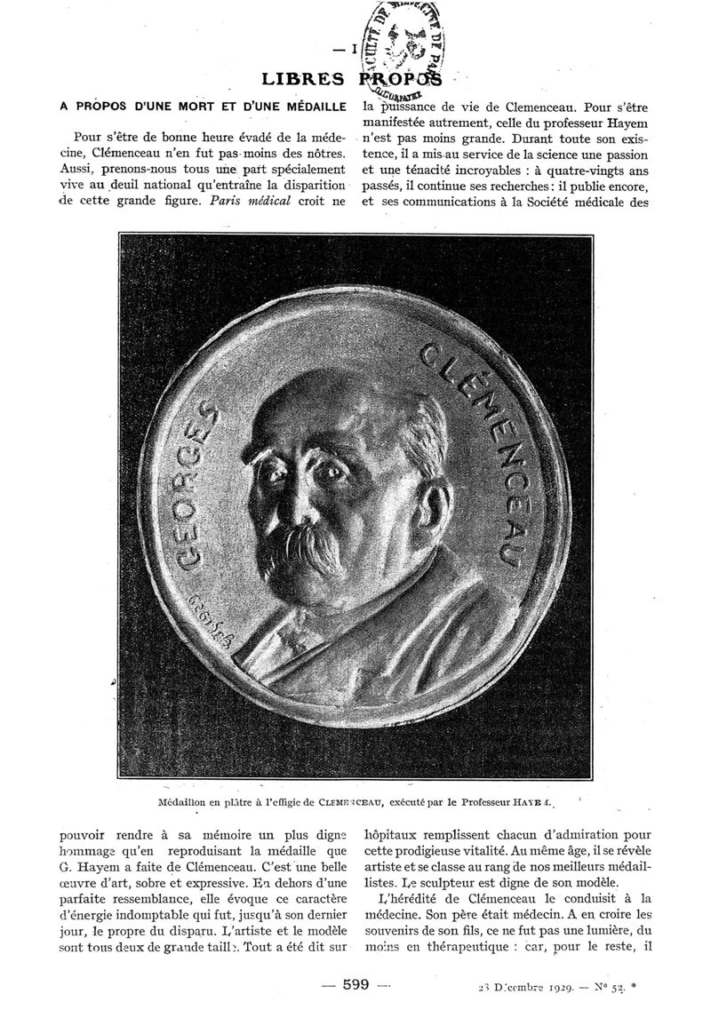 1929, n° 74, partie paramédicale. -