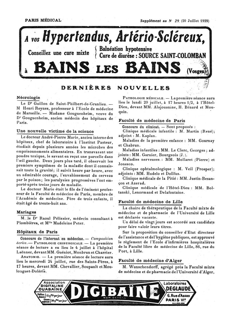 1929, n° 74, partie paramédicale. -
