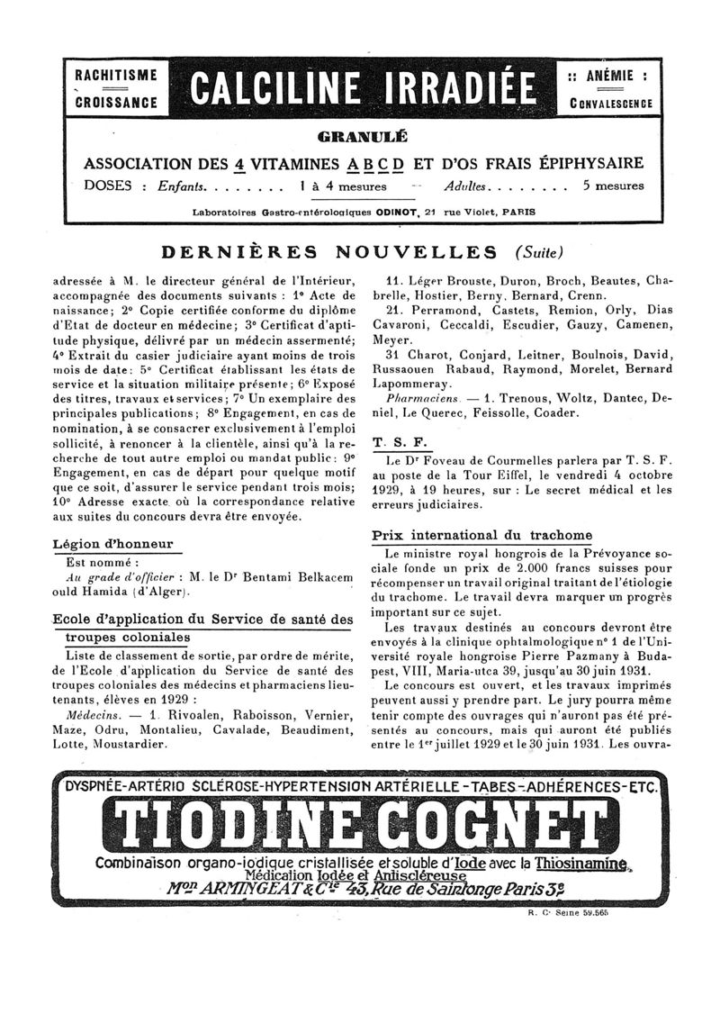 1929, n° 74, partie paramédicale. -