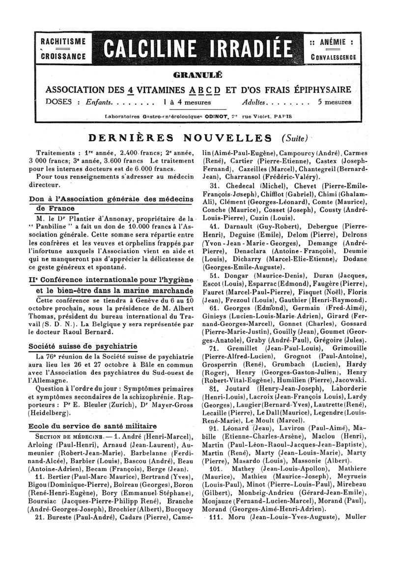 1929, n° 74, partie paramédicale. -
