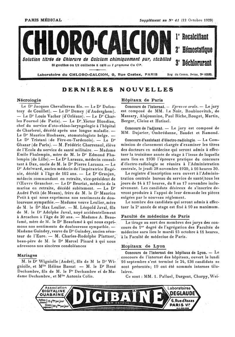 1929, n° 74, partie paramédicale. -