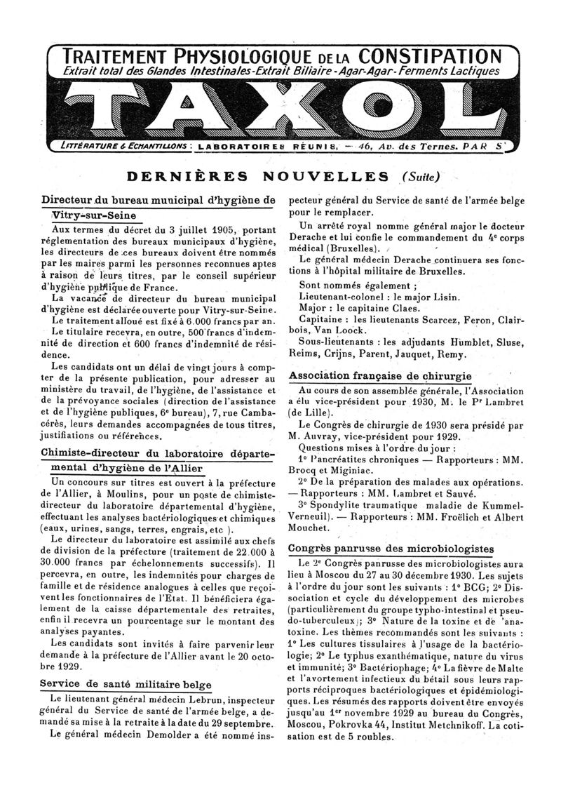 1929, n° 74, partie paramédicale. -